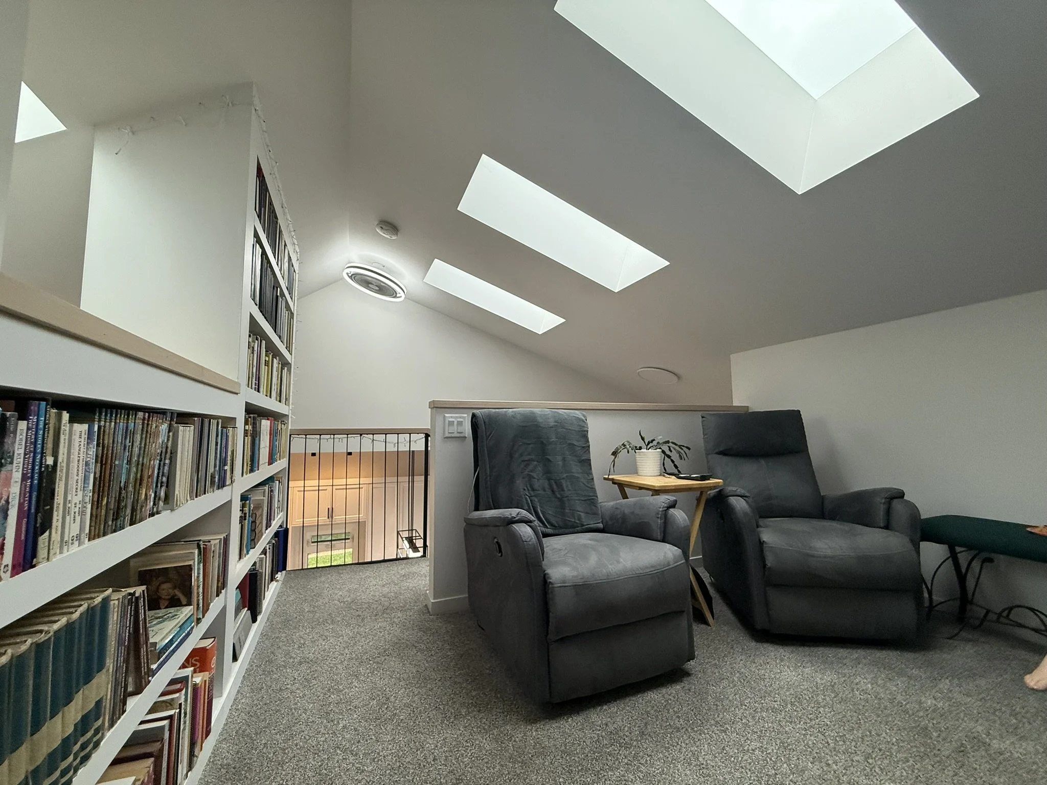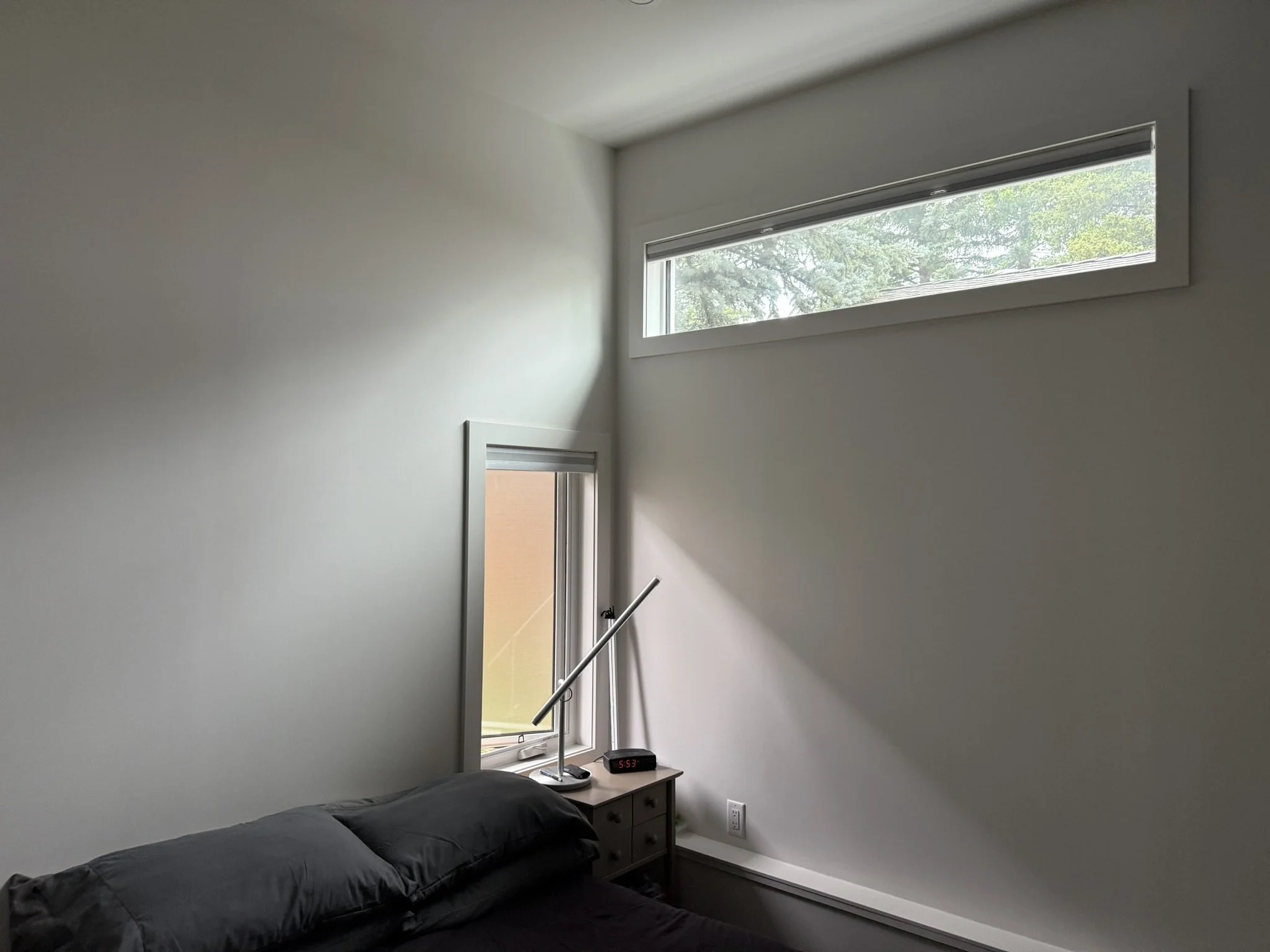 The new suite provides a sheltered side entrance for the occupant, and separate garage spaces for the suite and the existing home on the property. Window openings along the sides of the suite are strategic to capture light while maintaining privacy, while a covered balcony looking onto the lane offers both occupants and passersby opportunities for neighbourly connection.