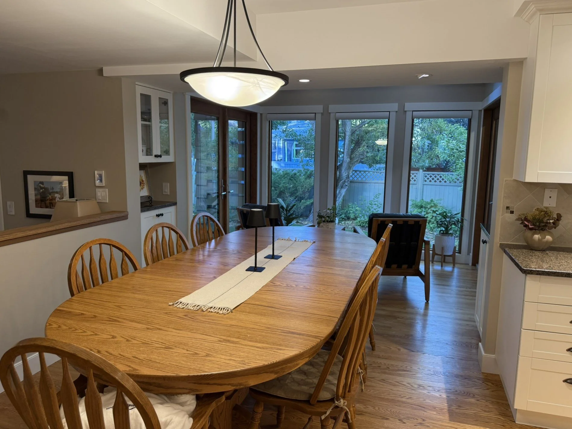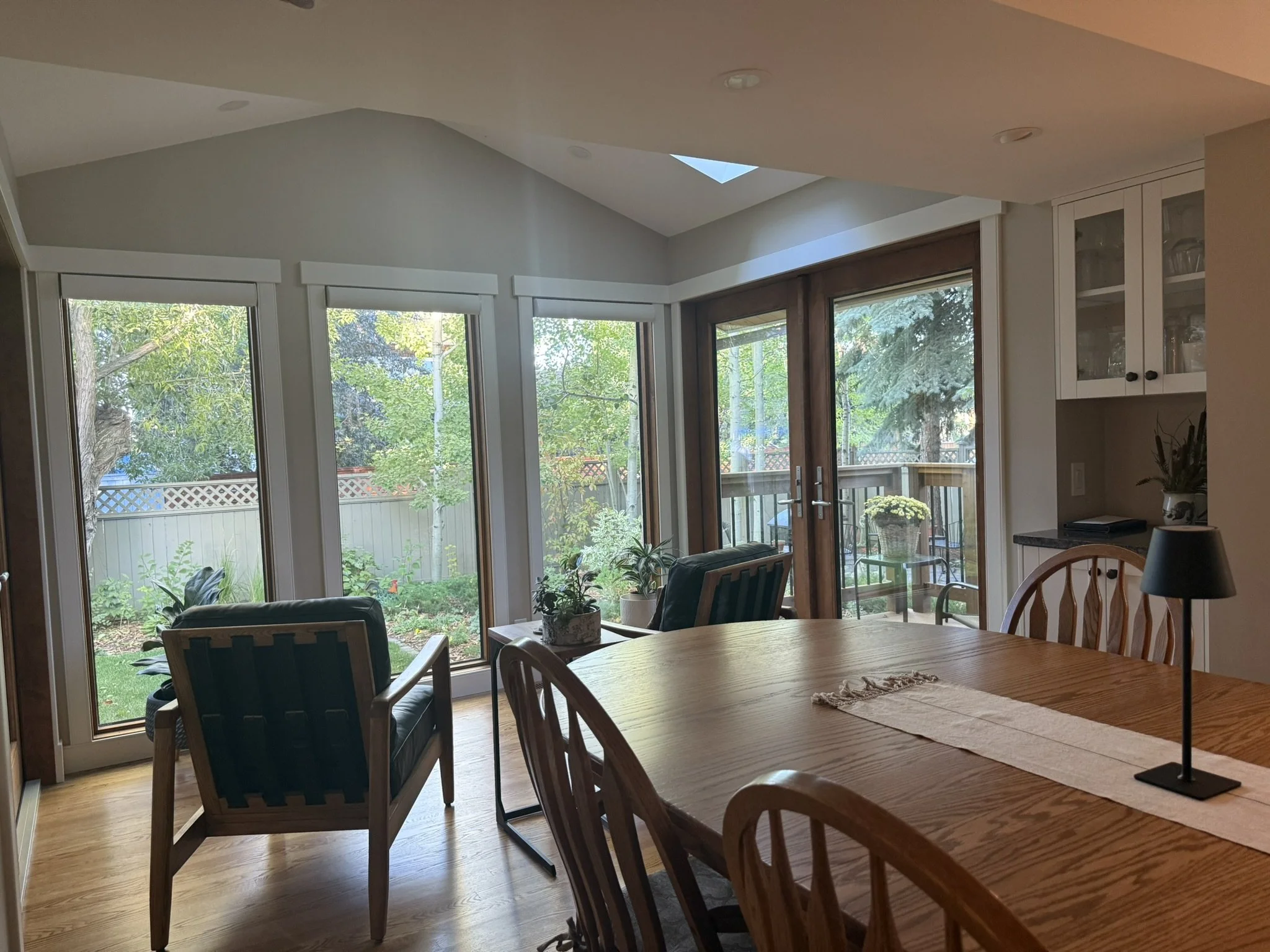 In order to seat a growing extended family around one common table, an increasingly cramped dining area was expanded into the generous backyard garden to create a space that serves as an intimate sitting room that can be easily annexed to allow the homeowners to host larger gatherings.